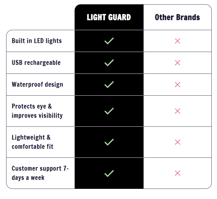 Light Guard has a built-in LED light that follows your line of sight, giving you protection and illumination in one tool.